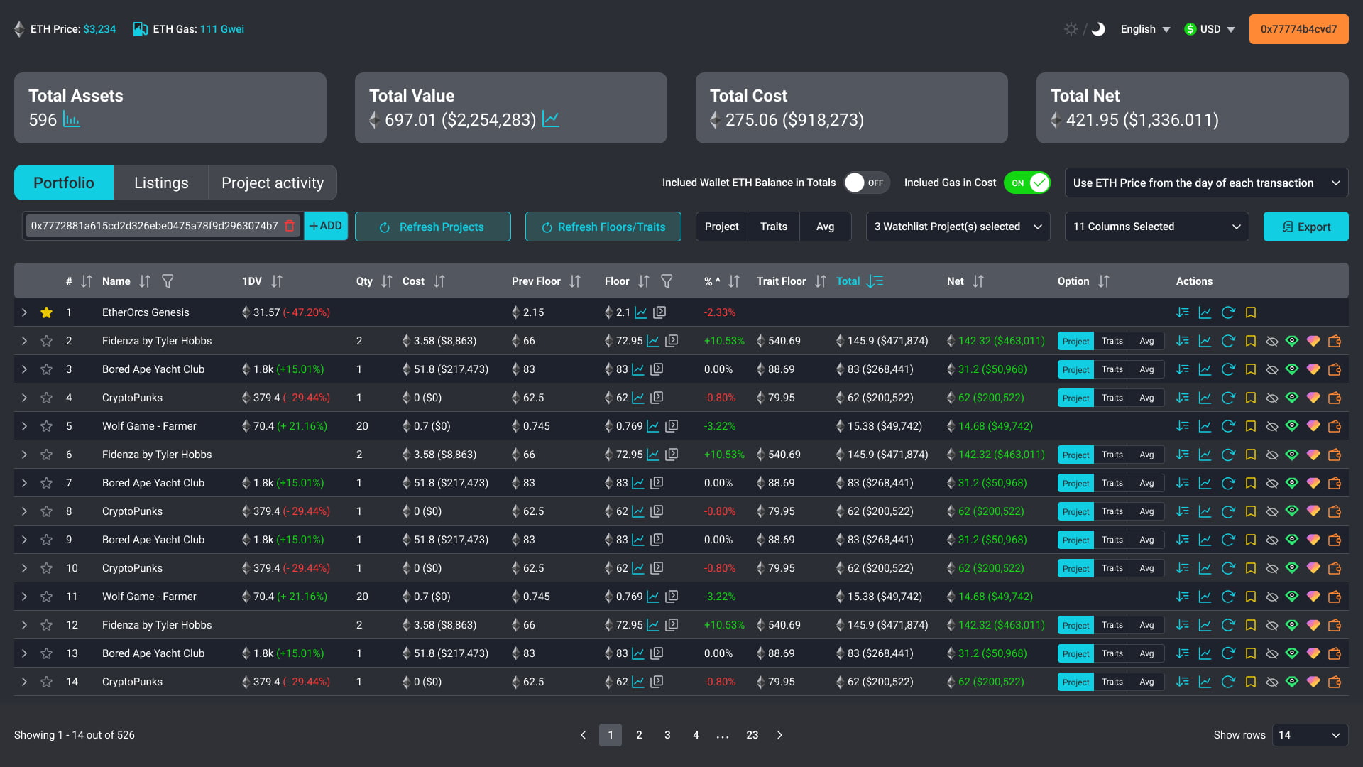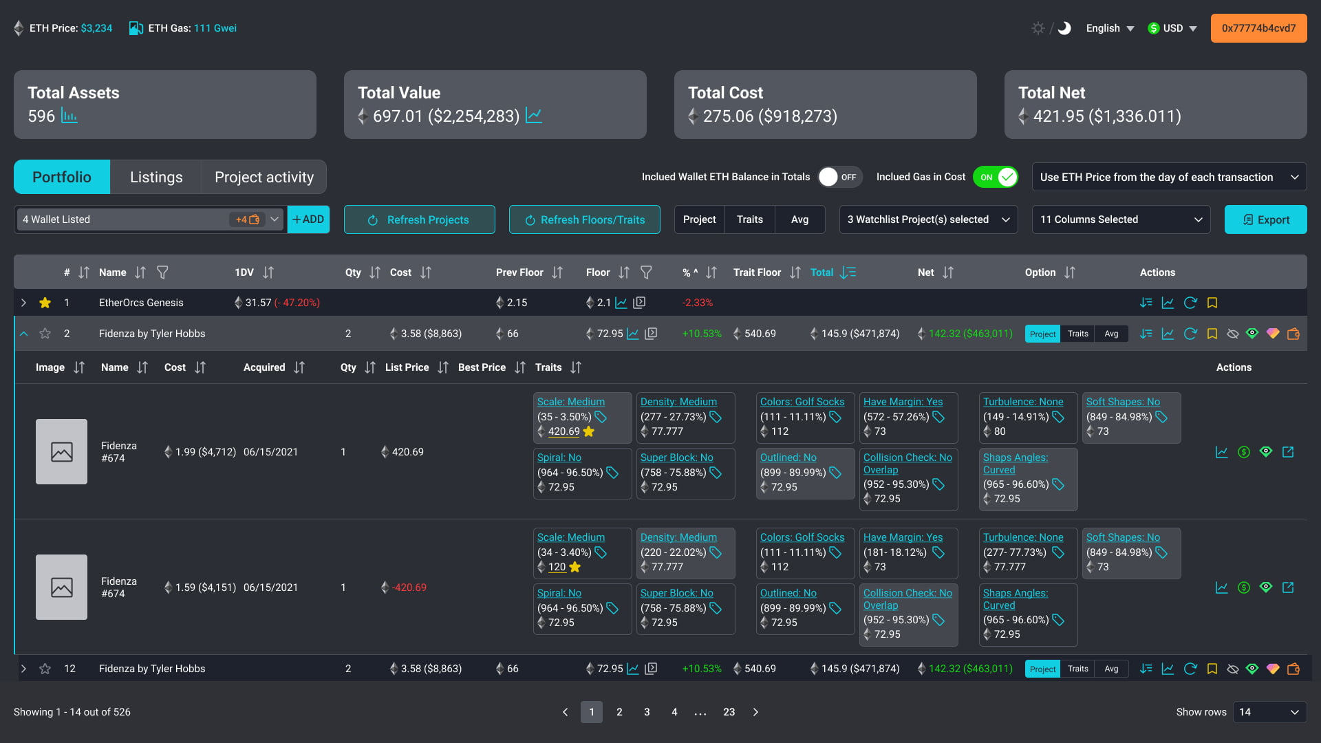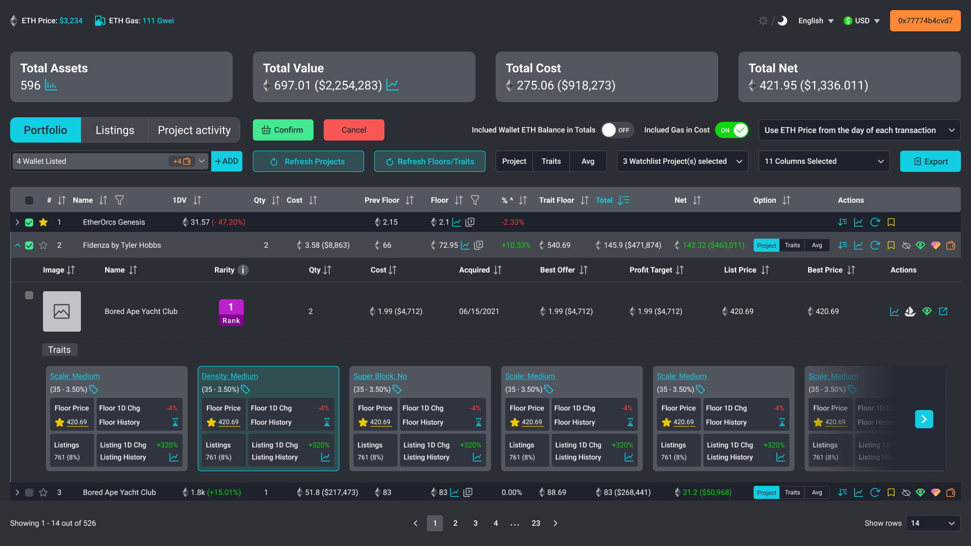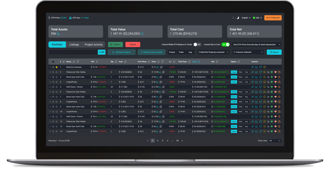 c. Sliding Feature for Expanded NFT Information: To provide users with complete NFT information, we implemented a sliding feature. When a user clicks on a specific NFT row, additional details and traits slide down, revealing a more comprehensive view of the NFT. This allowed users to access all relevant information without overwhelming the initial dashboard view.